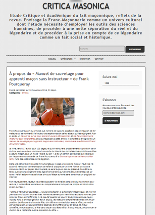 Le livre, vendu 17 euros pour 125 pages, et qu'on retrouvera probablement au prochain salon du livre avec son auteur, comprend une sorte de résumé des connaissances symboliques utiles au jeune maçon, sous un mode « école du soir », avec un parfum spiritualiste qui s’explique par l’appartenance déclarée de Frank Pourqueray à la Grande loge mixte de Memphis Misraïm, l'une des obédiences de rite égyptien.