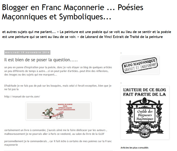 Poésies maçonniques et symboliques au menu du blog de cette "Frangine du Nord", membre de la fédération française du Droit Humain